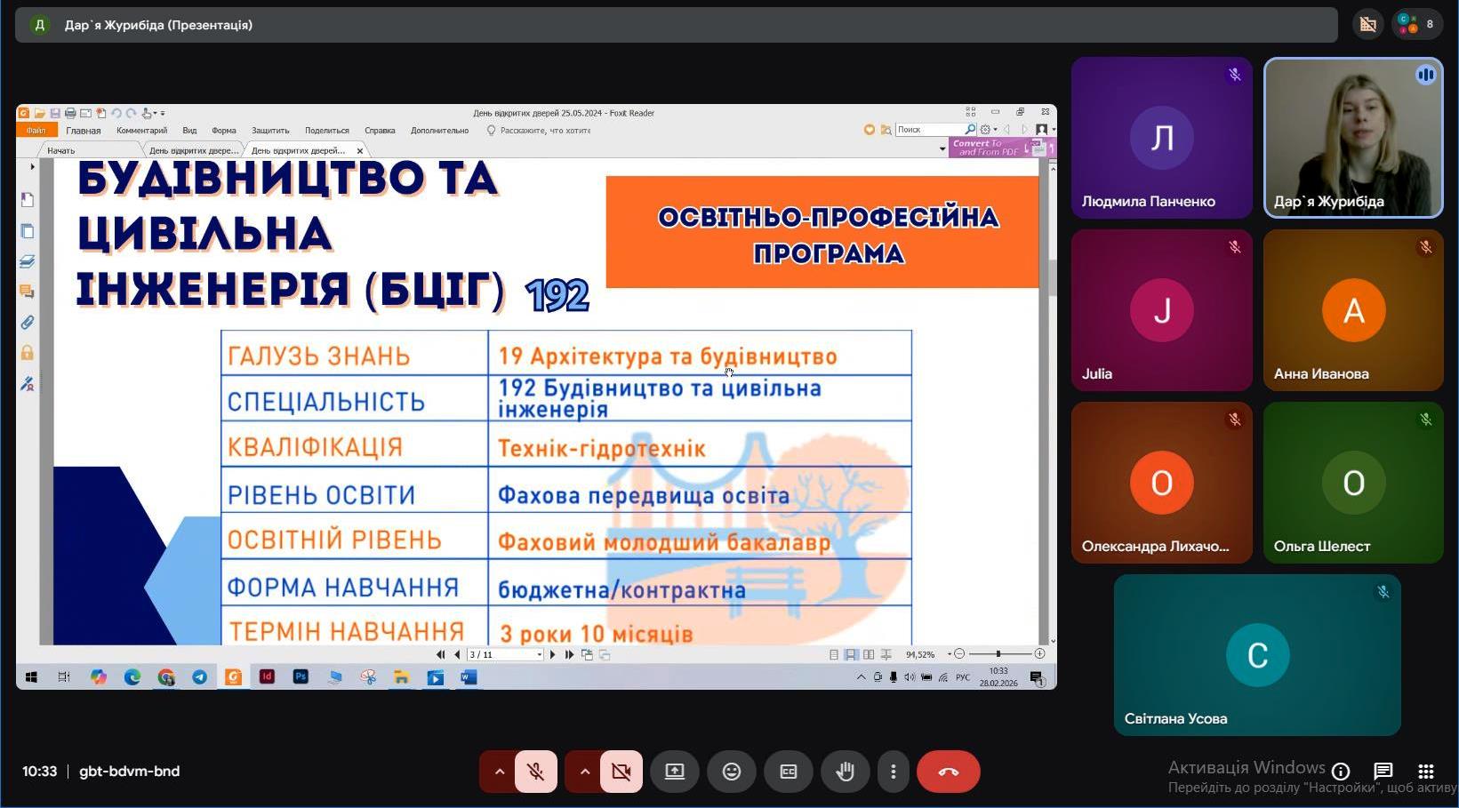 Формат заходу залишився незмінним: в холі на гостей чекали завідувачі відділень і викладачі, онлайн-зустріч проводила колишня голова Студентської ради, а нині співробітник коледжу – лаборант відділу виховної роботи Дар’я ЖУРИБІДА.